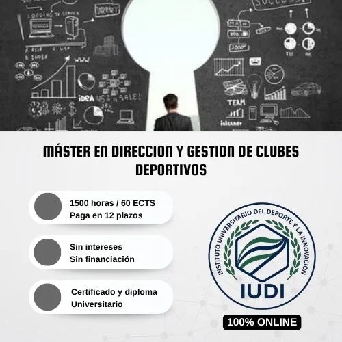 Máster 100% online para dirigir y gestionar clubes deportivos. Aprende liderazgo, estrategia, marketing y gestión económica. Pago a plazos sin intereses.